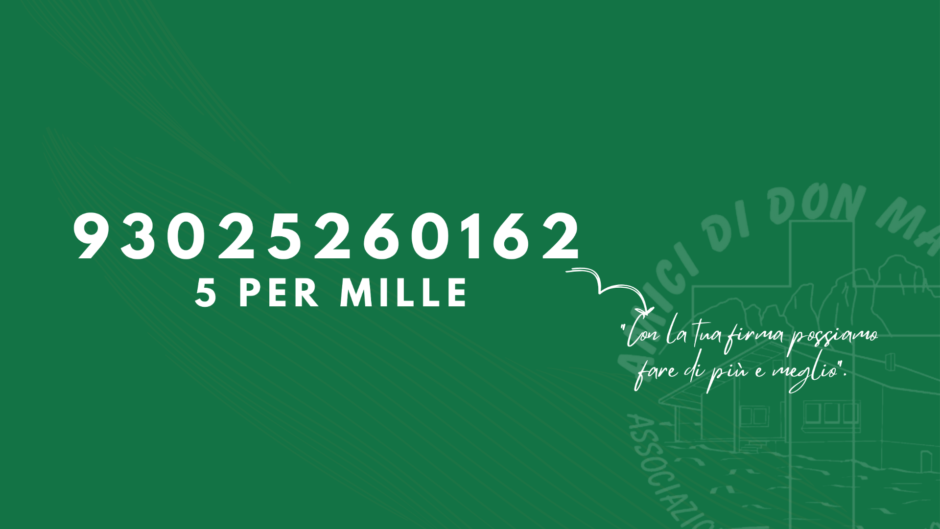anche quest'anno mi permetto di richiamare la tua attenzione affinché possa valutare l'opportunità di destinare il 5 per mille alla nostra associazione. Un gesto semplice che a te non costerà nulla, ma che sarà di grande aiuto alla nostra Organizzazione per dare continuità ai progetti esistenti e darne vita a dei nuovi.
