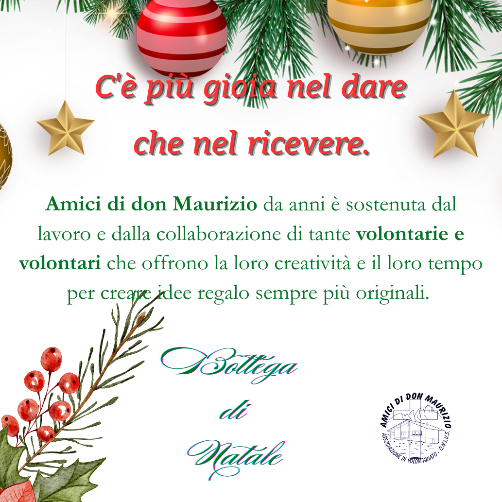 Amici di don Maurizio da anni è sostenuta dal lavoro e della collaborazione di tante volontarie e volontari che offrono la loro creatività e il loro tempo per creare idee regalo sempre più originali.