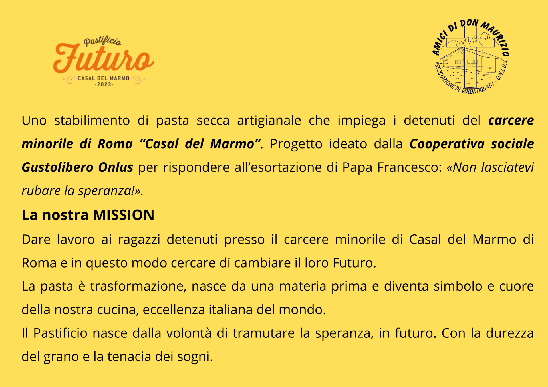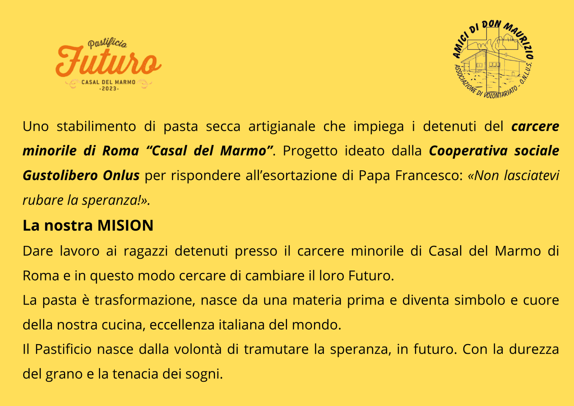 Amici di don Maurizio o.n.l.u.s. sostiene il lavoro degli amici di Pastificio Futuro.
